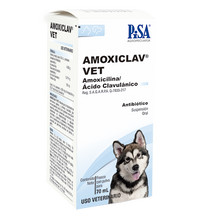 12.5 a 25 mg/kg vía oral cada 12 horas. Cuando la infección es provocada por bacterias Gram negativas se recomienda usar la dosis alta.