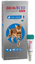 BRAVECTO PLUS CAT es un desparasitante externo para el tratamiento de infestaciones por garrapatas y pulgas en gatos.