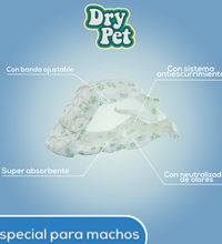 Práctico y cómodo pañal desechable absorbente ideal para evitar que los perros machos se orinen en lugares o zonas prohibidas dentro del hogar. Fabricado con una superficie interna acolchonada, súper absorbente, con sistema anti escurrimientos y neutralizador de olores. Con banda ajustable.