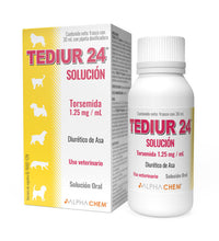 INDICACIONES TERAPÉUTICAS: TEDIUR 24Ò SOLUCIÓN está indicada para el tratamiento del edema asociado a insuficiencia cardíaca congestiva como resultado de la enfermedad degenerativa de la válvula mitral y su respectiva signología como: disnea, tos e intolerancia al ejercicio; ascitis y signos de edema pulmonar. También en el tratamiento de la insuficiencia hepática y renal, incluyendo el síndrome nefrótico. TEDIUR 24 SOLUCIÓN se indica como reemplazo de la terapia diurética en pacientes caninos resistentes a dosis altas de furosemida oral.